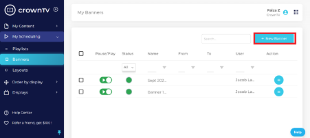On the top right corner, click ‘New Banner’.